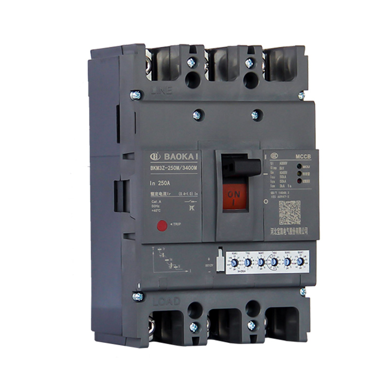 BKM3Z系列智能型塑料外壳式断路器适用于交流50Hz,额定绝缘电压为800V,额定工作电压至 400V,额定电流至 800A的电路中作不频繁转换及电动机不频繁起动之用。具有过载长延时反时限、短路短延时反时限、短路短延时定时限、短路瞬时和欠电压保护功能,能保护线路和电源设备不受损坏。本系列断路器具有隔离功能。本系列断路器可垂直安装 ( 即竖装 ),亦可水平安装 ( 即横装 )。本系列断路器执行标准:IEC 60947-1及GB/T 14048.1 《低压开关设备和控制设备 第1部分:总则》IEC 60947-2及GB/T 14048.2 《低压开关设备和控制设备 第2部分:断路器》IEC 60947-4及GB/T 14048.4 《低压开关设备和控制设备 第4-1部分:接触器和电动机起动器 机电式接触器和电动机起动器(含电动机保护器)》IEC 60947-5及GB/T 14048.5 《低压开关设备和控制设备 第5-1部分:控制电路电器和开关元件 机电式控制电路电器》