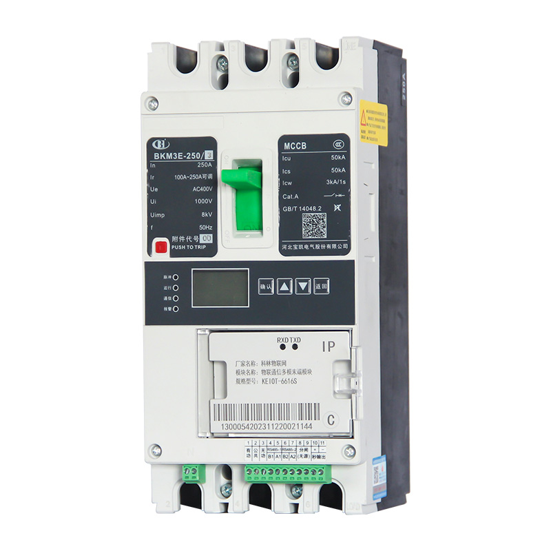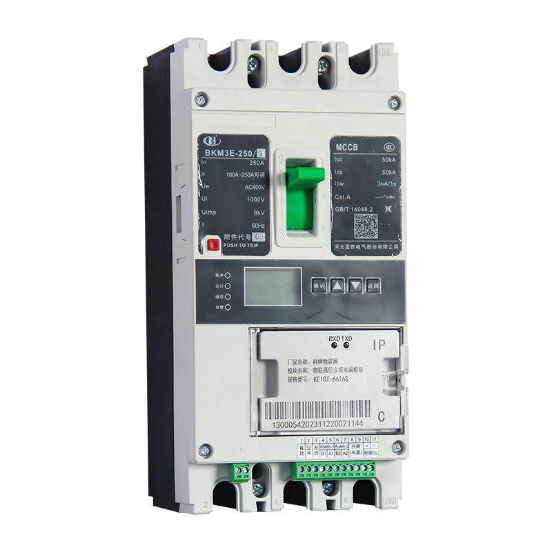 BKM3E系列塑料外壳式断路器适用于交流50Hz,额定绝缘电压1000V,额定工作电压至400V,额定电流至400A的配电网络中。本系列断路器具备过载长延时、短路短延时、短路瞬时、过欠压及断相保护功能,对线路和电源设备起保护作用。可以向终端设备反馈产品的电流、电压、功率、电能、寿命等信息,用于对负载端的检测和监控,降低电网的运维成本,也为将来的能效系统提供必要的数据。本系列断路器还具有配电网络拓扑关系自动识别和电力线载波通讯功能。本系列断路器执行标准:IEC 60947-1,GB/T 14048.1 《低压开关设备和控制设备 第1部分:总则》IEC 60947-2,GB/T 14048.2 《低压开关设备和控制设备 第2部分:断路器》